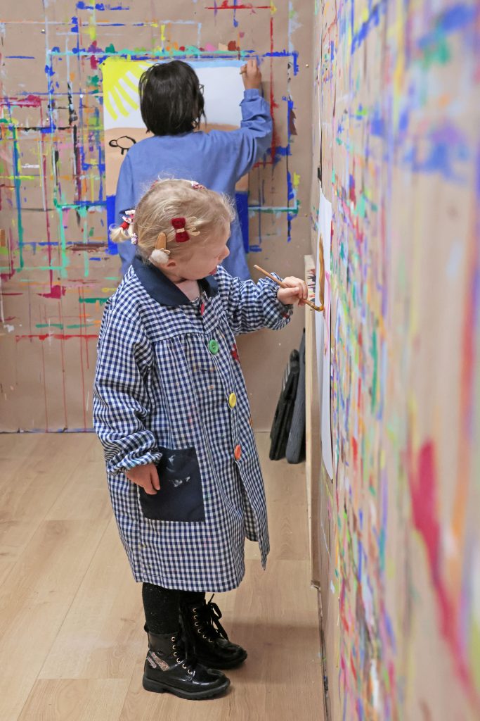 Dans l’atelier les enfants se déplacent libre de leurs mouvements . C’est une danse qui se rythme avec la personnalité et les capacités de chacun autour du Piano des couleurs.