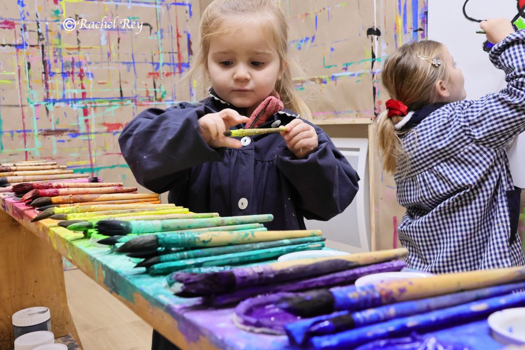 Au Piano des couleurs, l’atelier débute lorsque l’enfant a mis sa blouse .