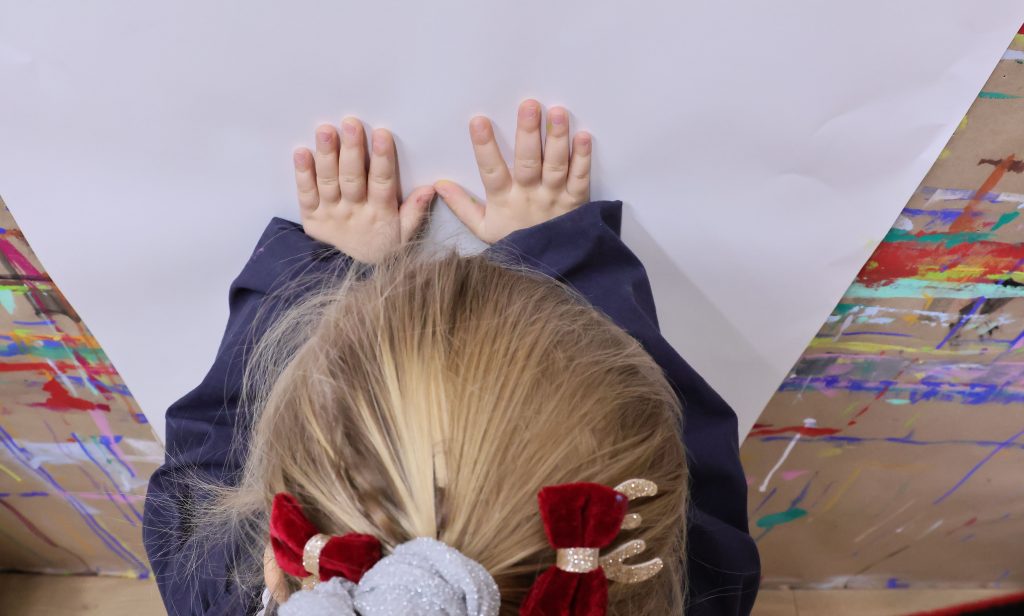 Choisir sa place, c’est apprendre à se connaître, à regarder les autres, à accueillir sa feuille, sa grandeur et la liberté qui l’attend. C’est ressentir le cadre sécurisant de l’atelier tout en laissant grandir ses possibles. Dans ce temps de liberté, l’enfant observe, prend la mesure de l’espace, perçoit la présence des autres et commence à déployer sa créativité dans un environnement bienveillant.