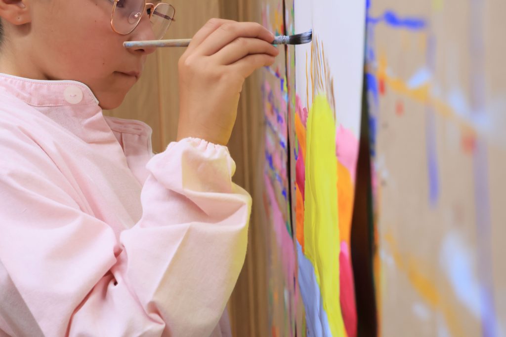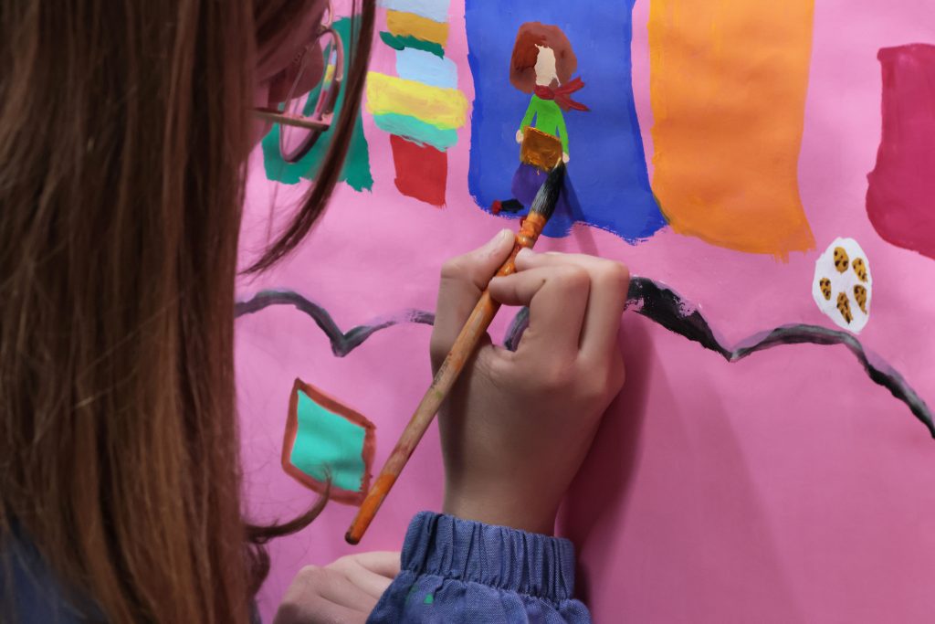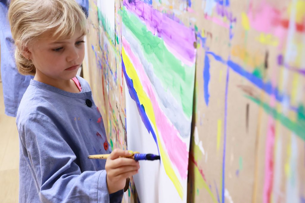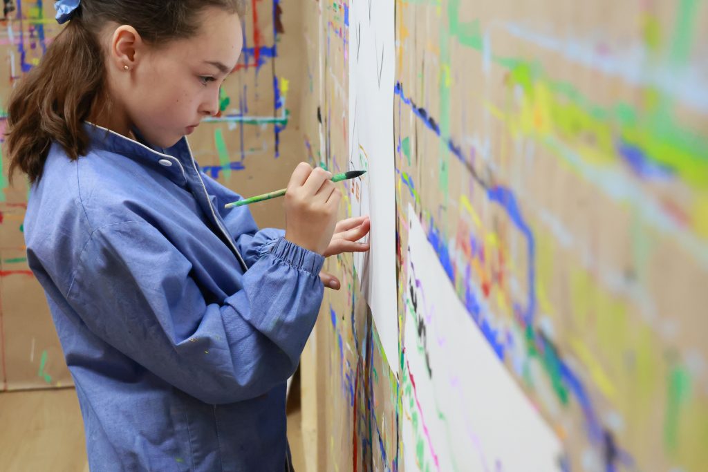 Tous les participants (y compris les enfants) peignent avec du matériel d’art de qualité.