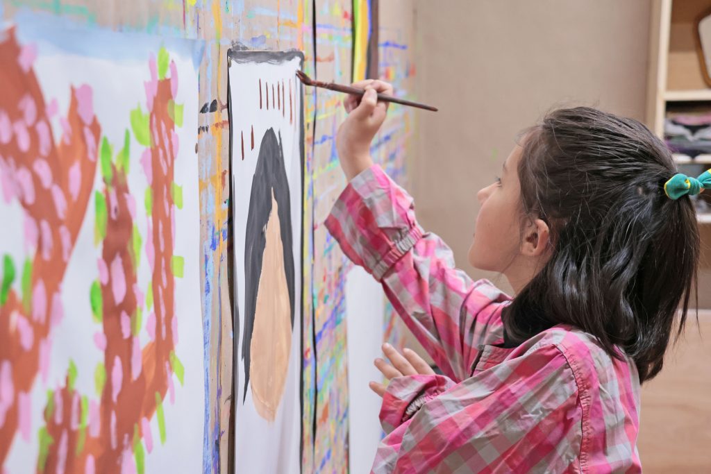 Tous les participants (y compris les enfants) peignent avec du matériel d’art de qualité.