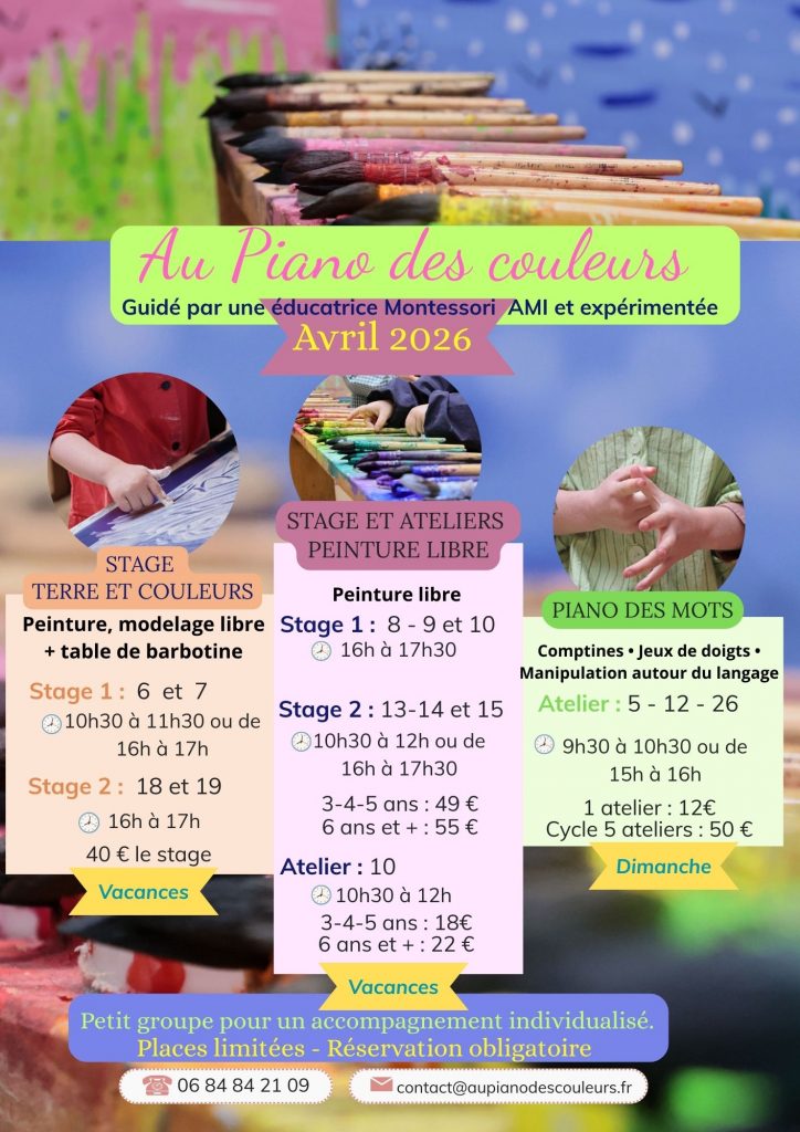 L’atelier Au Piano des couleurs ouvre ses portes à chaque vacances scolaires et parfois le week-end .